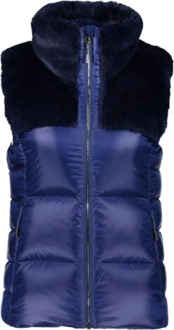 Luxurious and refined, the Maxine down Vest takes a traditional concept and brings in function and fashion elements; Featuring a Sport mink faux fur upper body, The warmth of 800 fill power responsibility sourced allied feather and down insulation, and the lightness of toray’s fantastic fabric. The ideal travel piece to layer over our katze suit, your favorite knit sweater, or fleece.