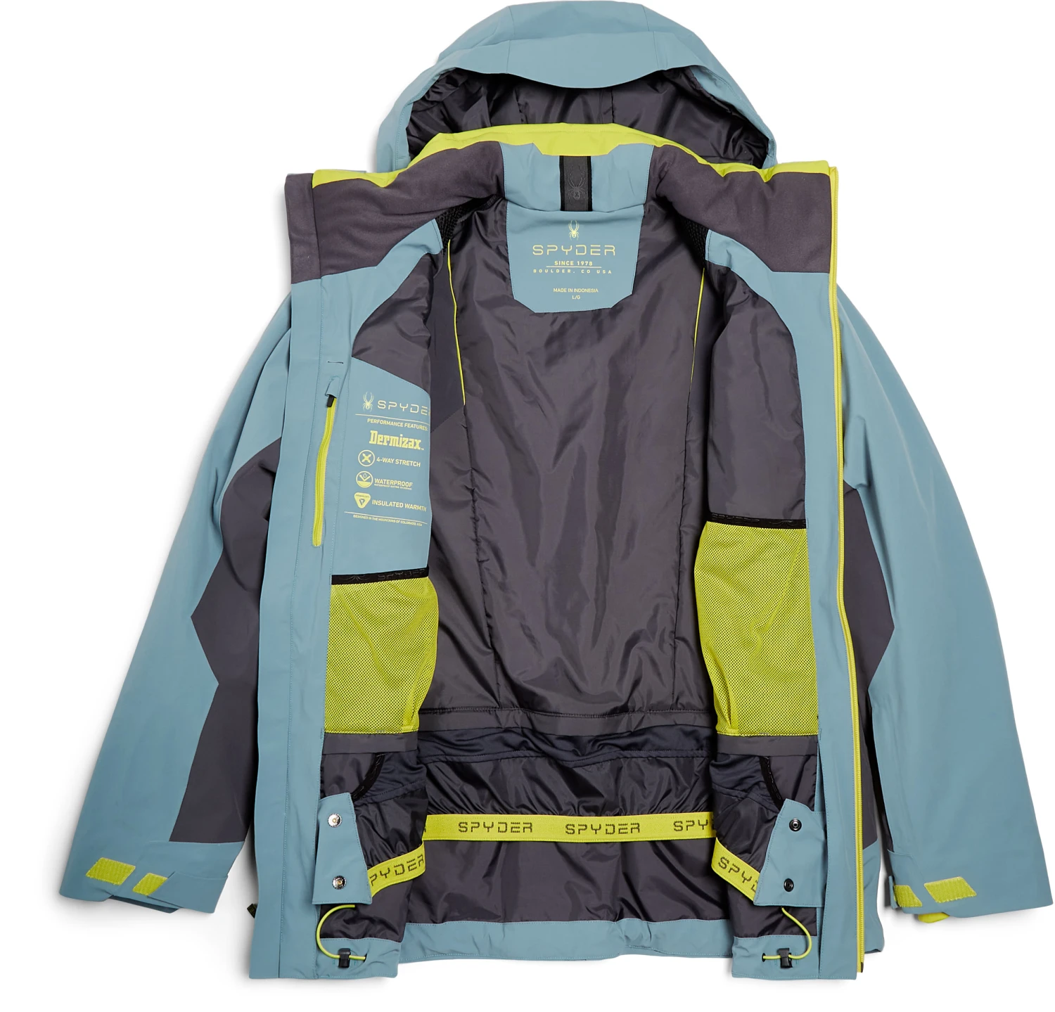 Silver Chassis: Targeted interior stretch panels, removable powder skirt with snapback feature and spacer mesh padding at shoulders