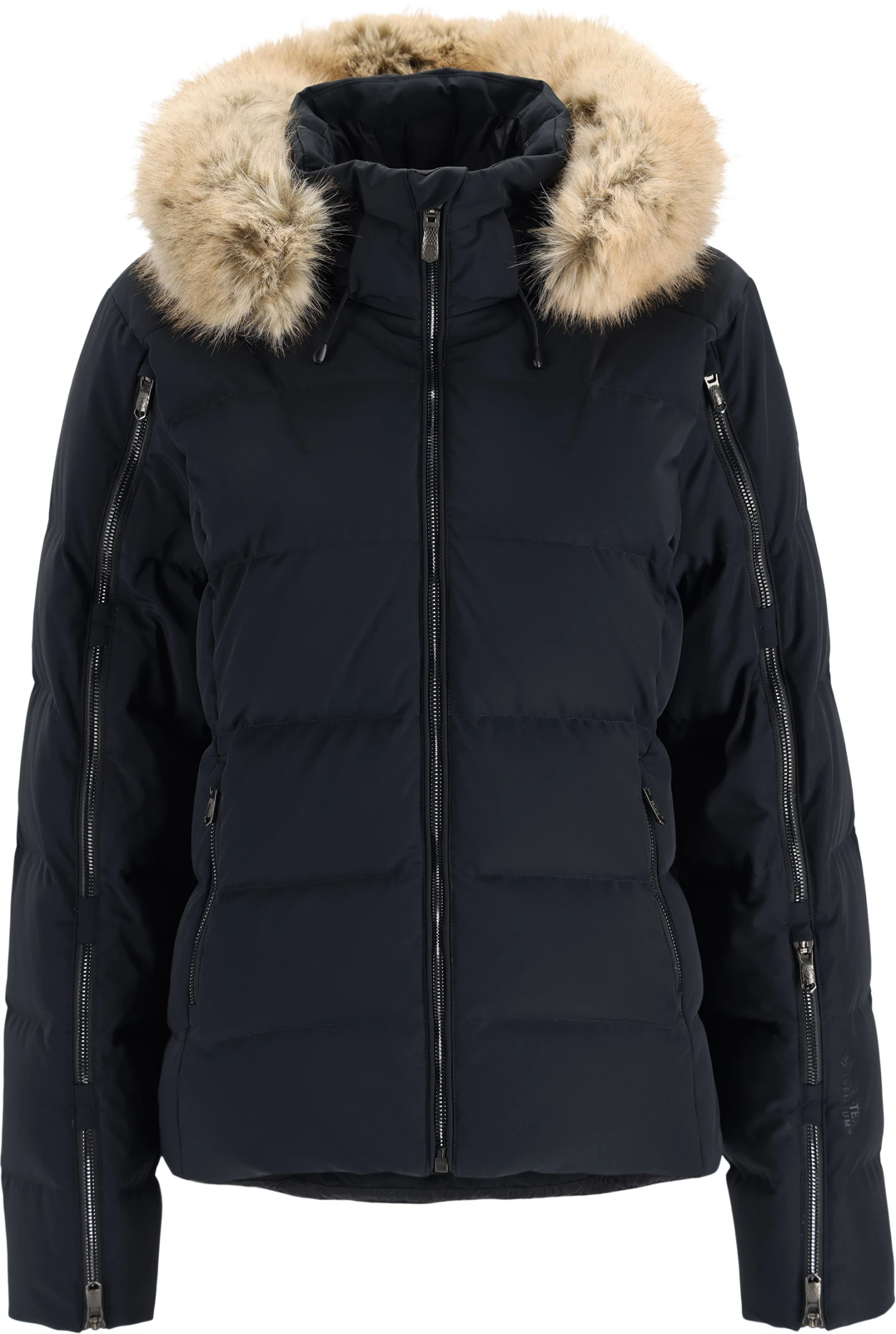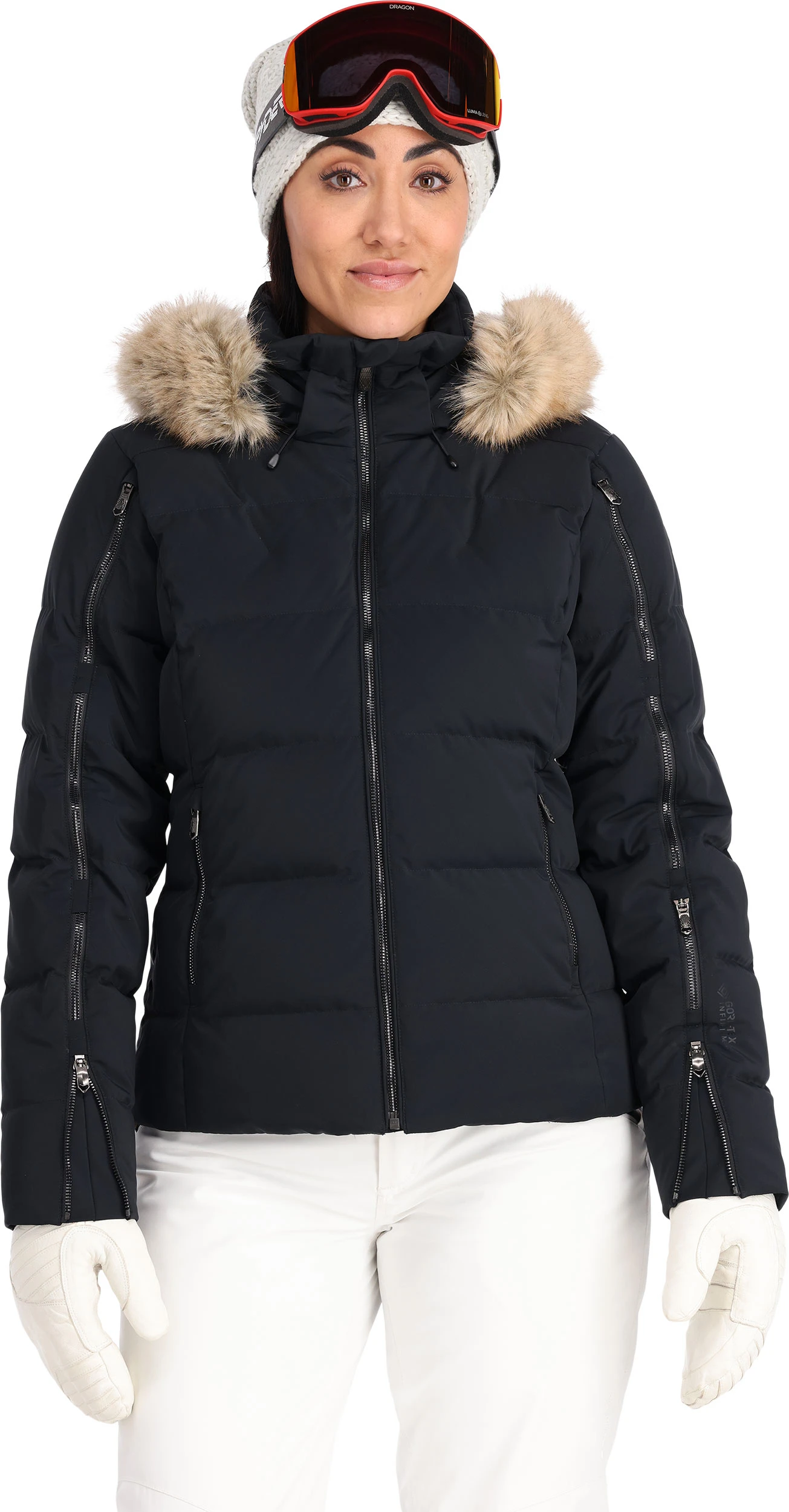 Luxury design, 4-way stretch fabric, and the unparalleled warmth of down defines the Falline Down Jacket. GORE-TEX provides the ultimate in weather protection and 650-fill goose down serves up lofty warmth for colder days. Exclusive to the Falline, elegant Metaluxe® zippers down the arm serve as vents, data card pocket and sleeve cuff extension. Fashioned with a luxurious and removable faux fur trim, this sophisticated style is versatile enough for on-piste and around town.