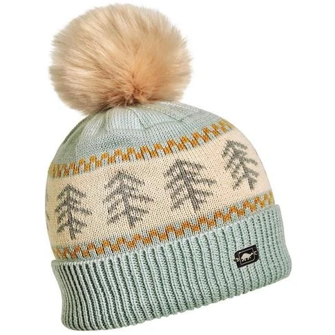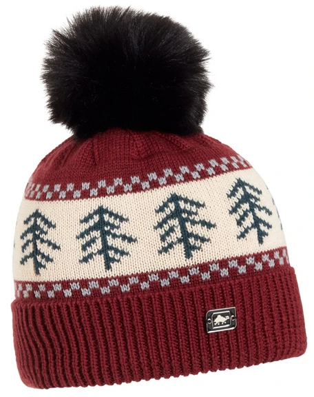 This merino wool blend beanie is a classic choice with primitive-style pines knit in to the crown and a casual fit that hugs your head. The fluffy, oversized pom on top adds a dash of fun to this easy option for your winter look. The cuff at the bottom gives your ears another layer of protection from the winter wind.